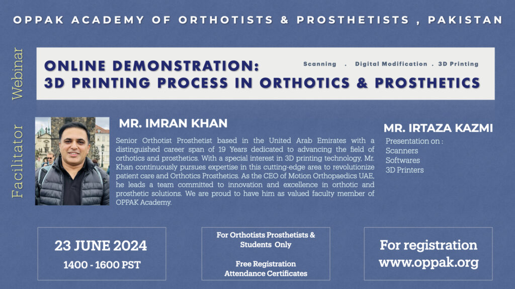 “To be the leading online platform in Pakistan by establishing an inclusive and innovative online learning hub for orthotists and prosthetists in Pakistan, empowering them to deliver superior care and enhance the lives of individuals with physical disabilities nationwide.”